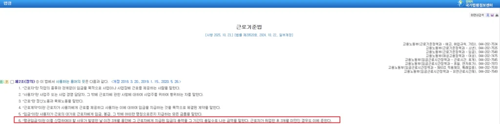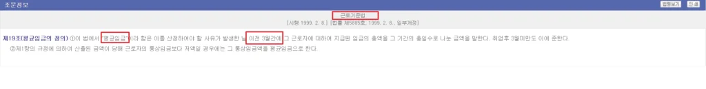 <근로기준법 ‘평균임금’ 정의 관련 조문 캡처>