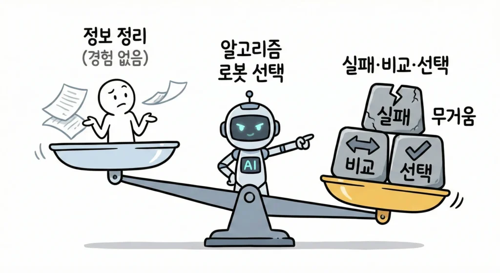 | 비교 구간 | “상황에 따라 다릅니다” | “A는 이런 사람, B는 이런 사람에게 맞아요” |
